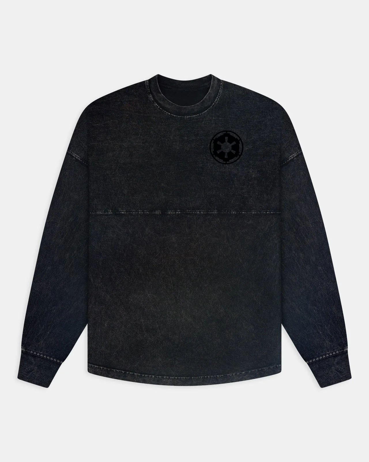 DETAILS: This Spirit Jersey® features screen-printed artwork with puff paint details. Trademarked garment design: Dropped shoulders, long cuffed sleeves, banded neckline, and a curved hem. Flag label at side.