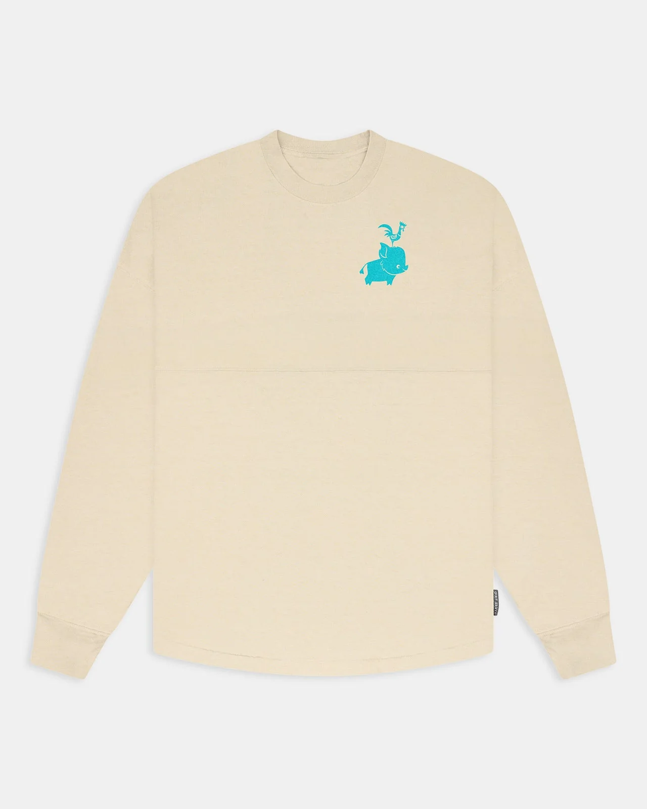 DETAILS: This Spirit Jersey® features screen-printed artwork with puff paint details. Trademarked garment design: Dropped shoulders, long cuffed sleeves, banded neckline, and a curved hem. Flag label at side.